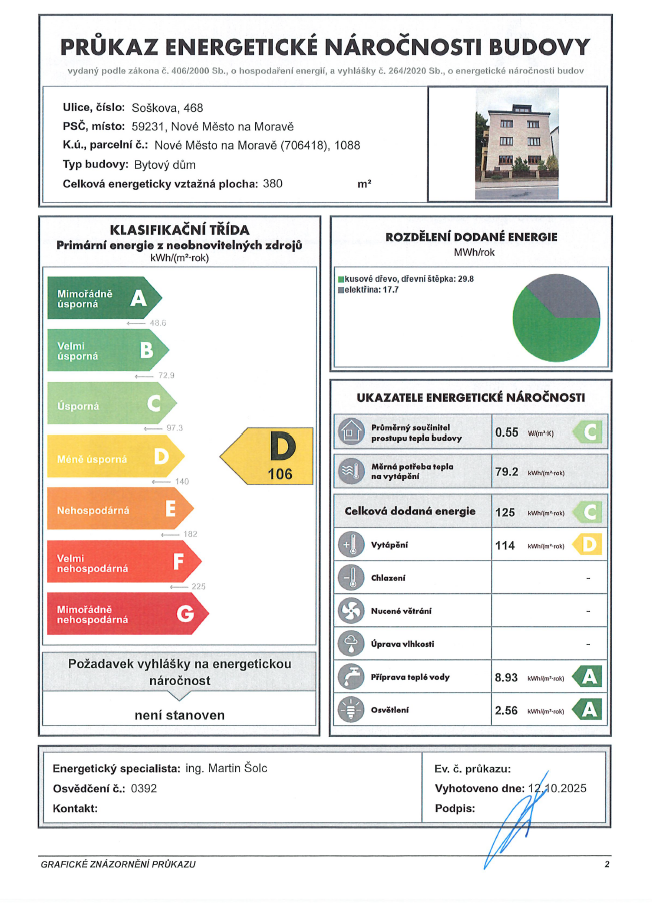 | Ukazatel ENB | 125.23 kWh/m2 za rok |